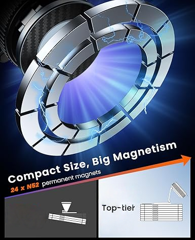 3.【Pro-Grade Magnetic Grip】Powered by 24 ultra-strong N55 magnets, this magnetic phone holder delivers 200% stronger hold than basic models. Its 3000gf clamping force locks your device in place—tested through 10,000+ vibration cycles and extreme road simulations. No slips during bumps, hard stops, or sharp turns. Plus, zero interference with phone/GPS signals.