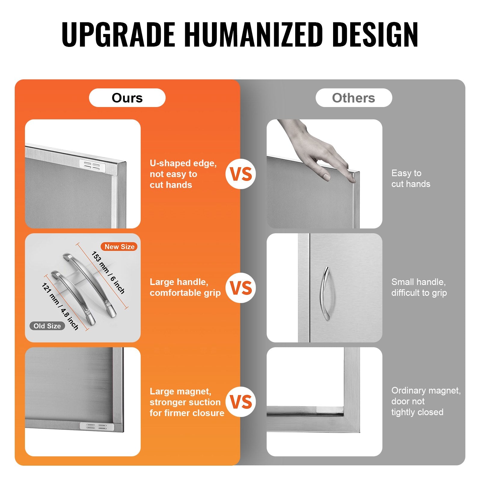 Overall dimensions:6 10x432x46 mm / 24x17x2 inches, installation size: 14x21inch/347x525mm, it is recommended to reserve an additional 0.08inch/2mm on this basis for better operation. The door is designed specifically for outdoor kitchens and barbecue islands, adding an elegant touch to your cooking area. With precise dimensions, it is easy to process, install, or dismantle. Available in various sizes and styles, it is perfect for indoor/outdoor kitchens and all other outdoor weather conditions.