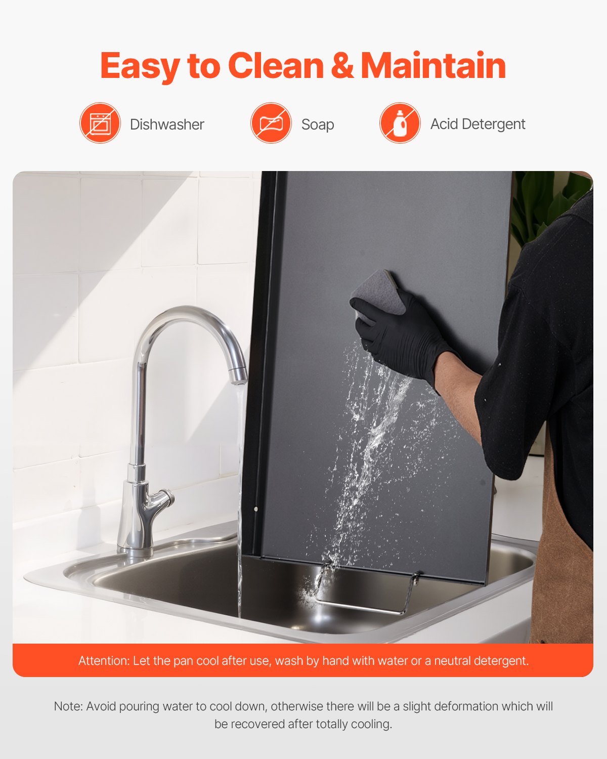 Made from durable carbon steel, this griddle for gas grill can handle temperatures up to 500℉, giving you the freedom to cook at high heat. The bottom x-shaped reinforcement resists to deform