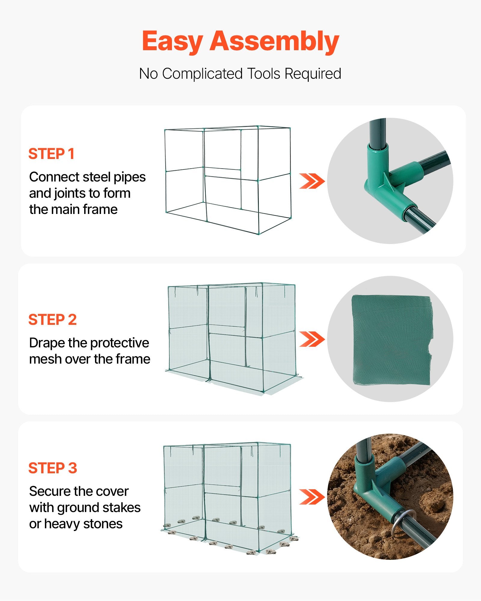 With a thoughtful design, our tall crop cage is easy to install without tools or complex operations. Just assemble the steel tubes with the connectors, put on the protective mesh, and reinforce with ground stakes or stones