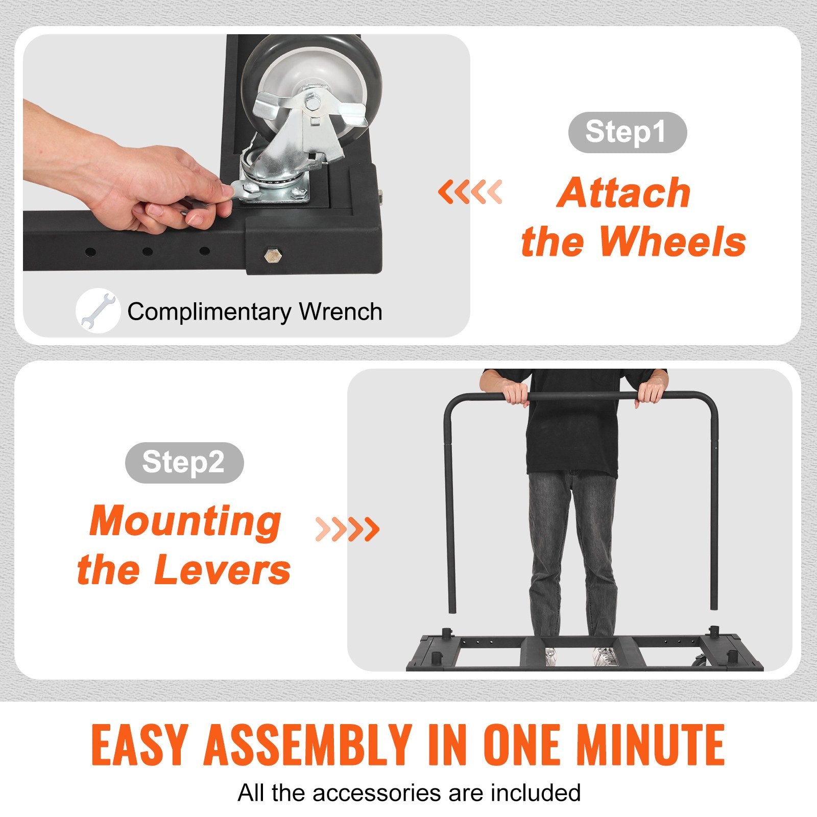 The drywall cart boasts an impressive carrying capacity of up to 1800 lbs/816 kg, making it capable of accommodating 8-10 large tables. Its spacious table size of 45.28 x 29.13 in/1150 x 740 mm allows for easy transportation of multiple sheets at once.