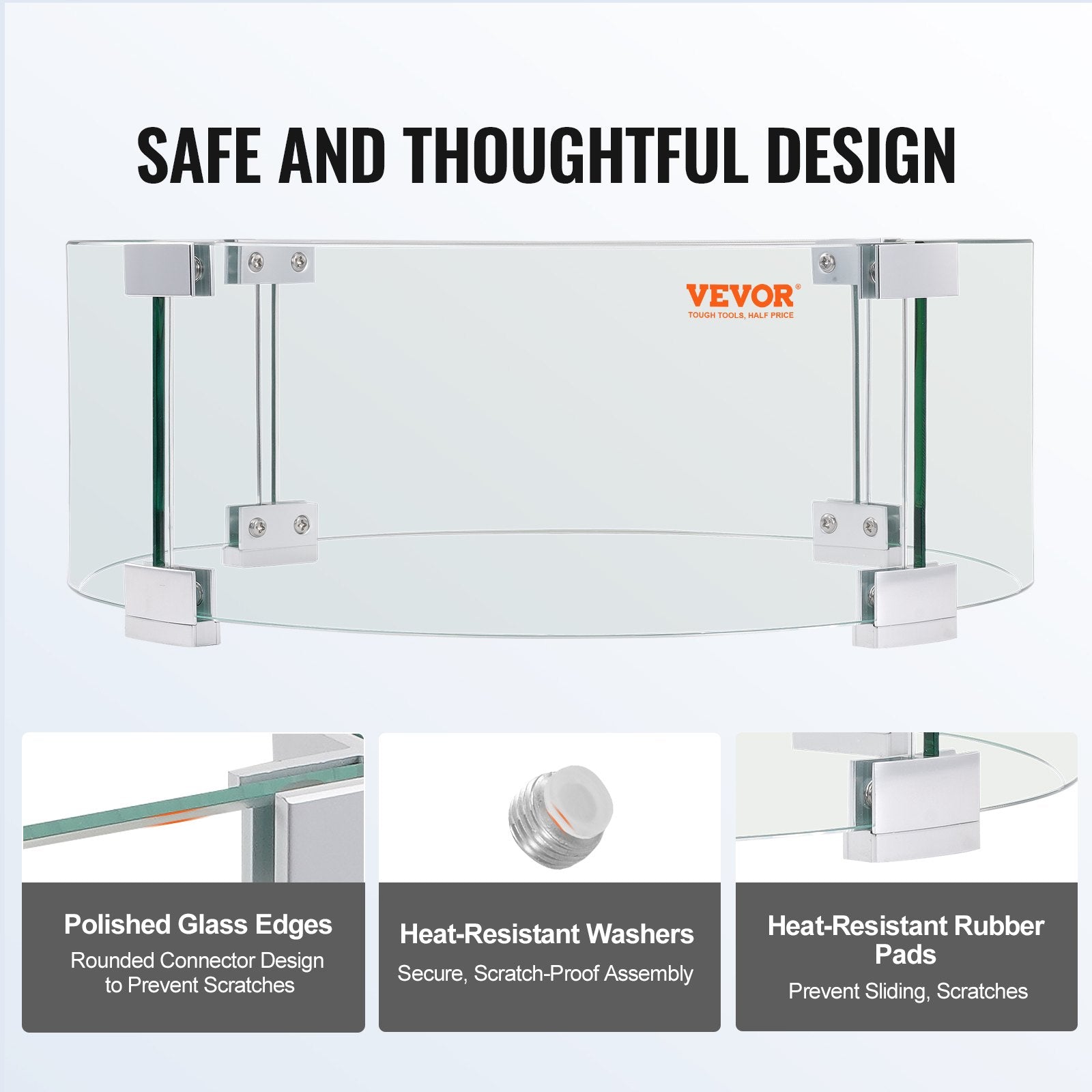 VEVOR Fire Pit Wind Guard, 23 x 23 x 8 Inch Glass Flame Guard, Round Glass Shield, 1/4-Inch Thick Fire Table, Clear Tempered Glass Flame Guard, Aluminum Alloy Feet for Propane, Gas, Outdoor