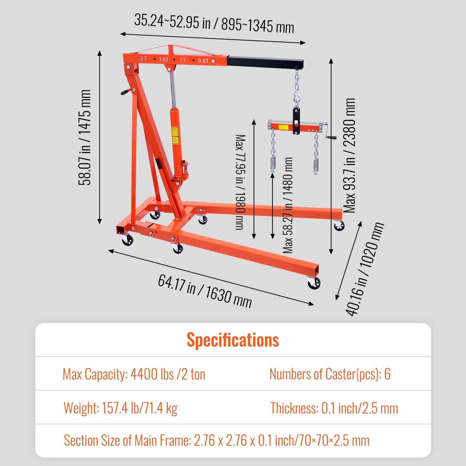 VEVOR's hydraulic engine hoist has a powerful engine crane and a standard leveling tool. Say goodbye to the hassle of purchasing separate equipment, as our 2-in-1 engine hoist provides everything you need for a time-saving and labor-saving experience.