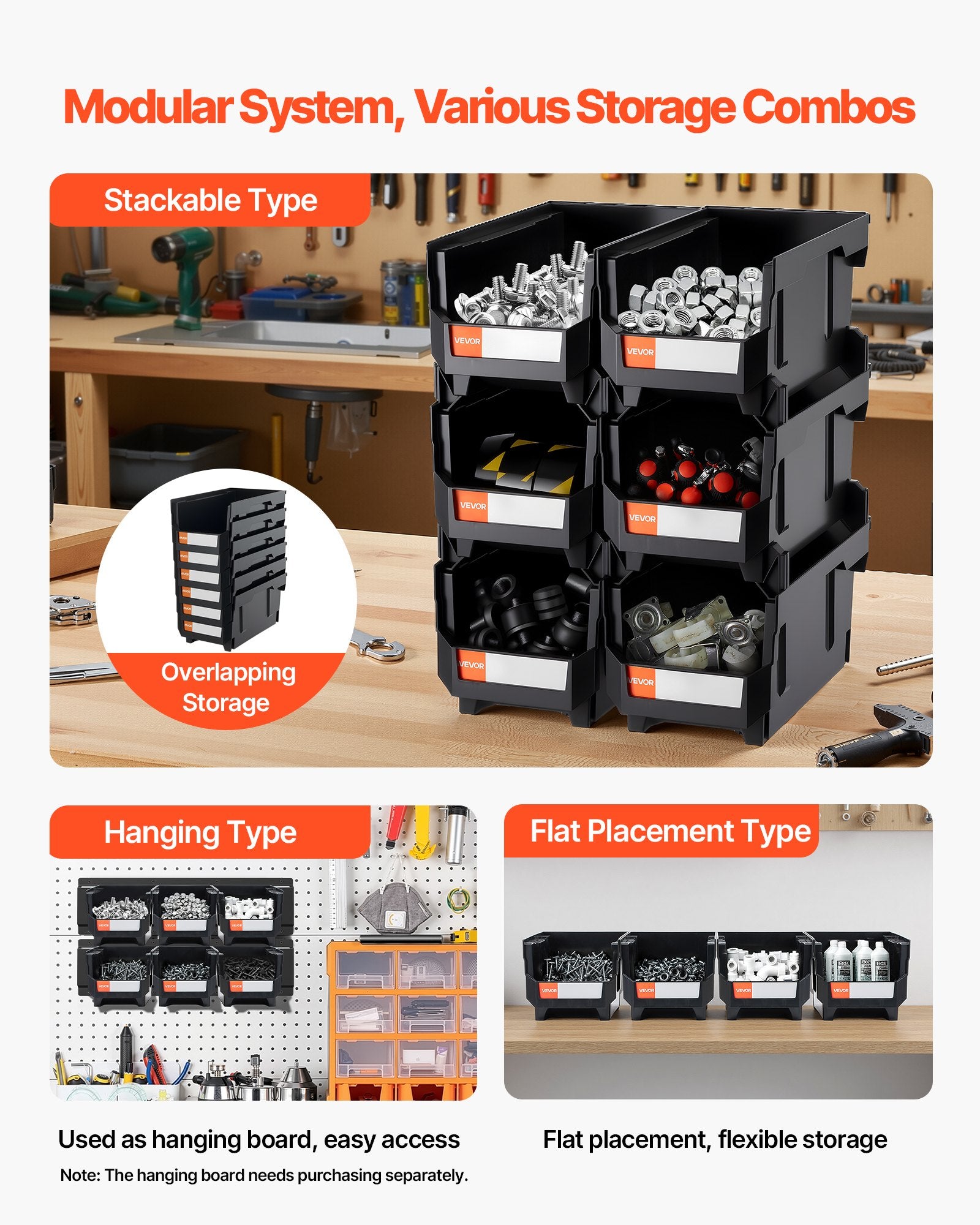Crafted from sturdy, easy-to-clean PP plastic with reinforced pillar-style supports, these garage organizer bins can be stacked, hung, or placed flat. No wobbling, no breaking, fully reusable