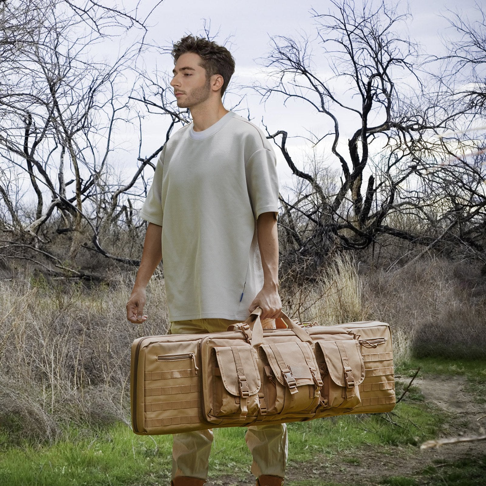 Our tactical rifle bag can be carried on the shoulder or hand-carried. The option to carry the long gun bag adds practicality and convenience, making it a versatile and reliable companion for various outdoor activities and shooting adventures.