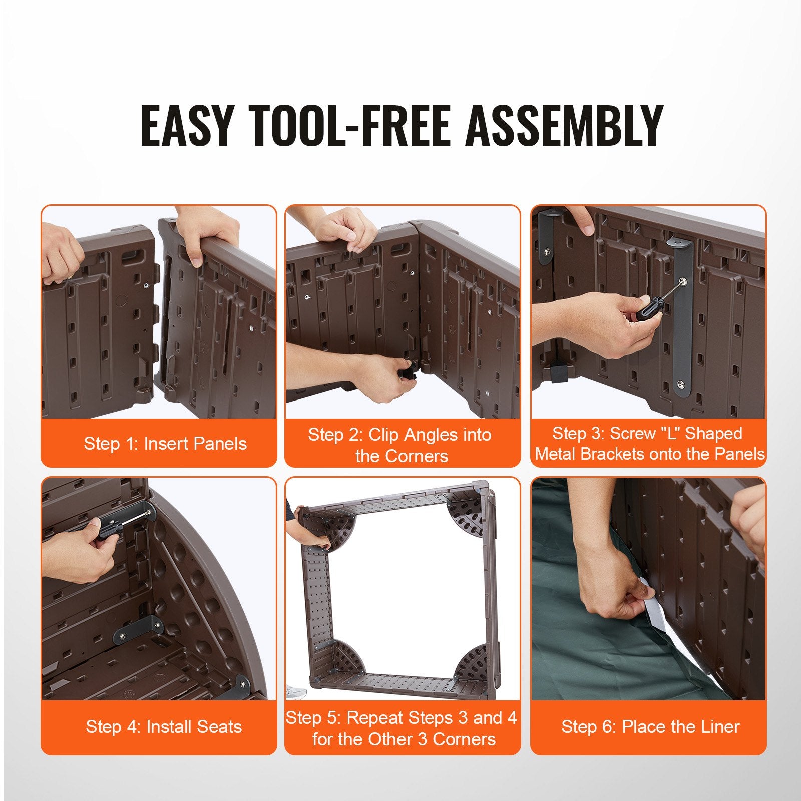 Our kids sandbox is easy to assemble with no tools required. Simply insert the panels into the slots, place the liner, and attach the seats. Clear installation instructions are included to help you create the perfect children's play space in no time.