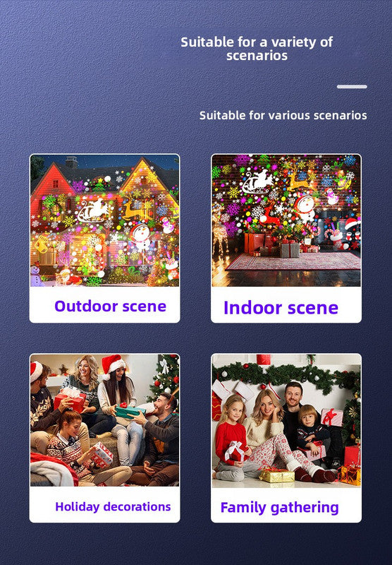 Create a memorable holiday experience with this easy-to-use Christmas projection lamp. Unlike complicated outdoor laser systems, this unit is designed for simplicity and flexibility. Simply plug it into a USB power source, adjust the angle, and watch as your walls come alive with dynamic holiday scenes. It is an excellent alternative to traditional string lights, offering a mess-free way to decorate rentals, apartments, or specific corners of your home.
