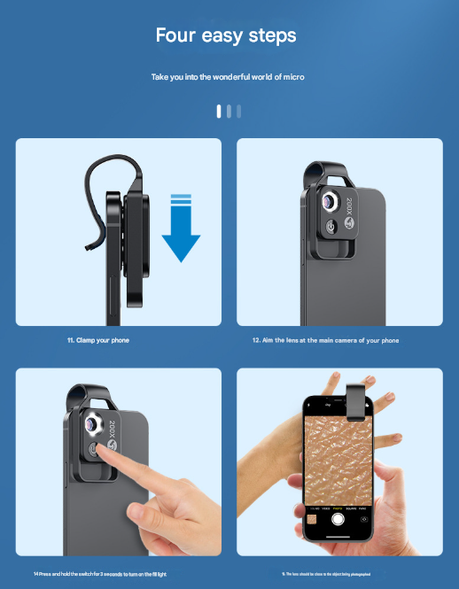Transform your phone's camera into a powerful 200X microscope with this incredible clip-on lens. Perfect for students, hobbyists, collectors, and anyone curious about the unseen world around them. Capture stunning high-definition photos and videos of insects, plants, textiles, circuit boards, and more, directly on your phone.