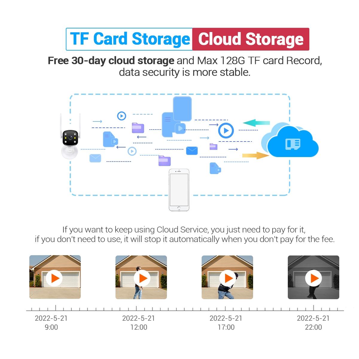 • Video Storage: Cloud Storage Service; Support Micro Sd Card (128G Max)