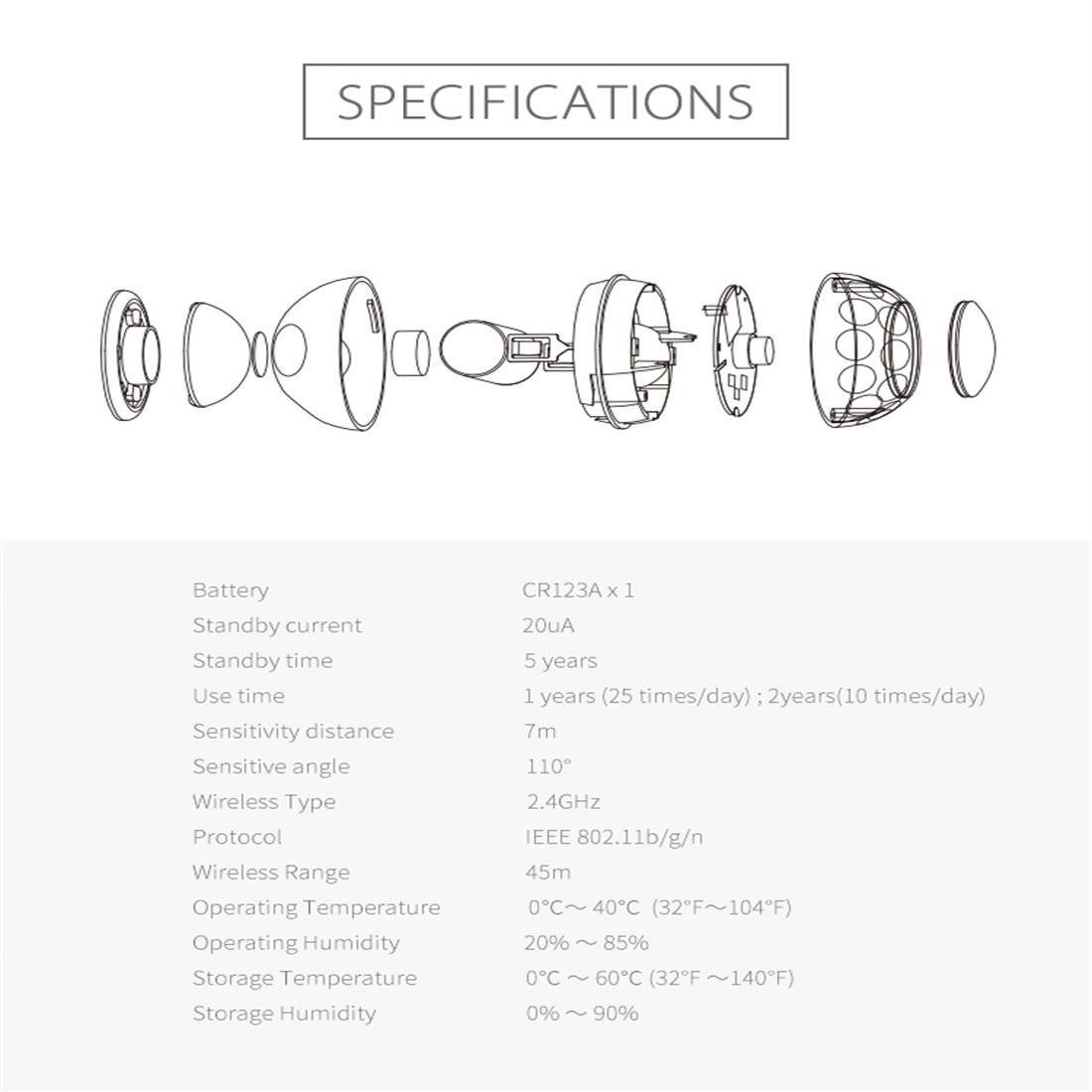 � 1 x Pd02W Wireless Wifi Pir Detector Motion Sensor With Magnet Bracket & Support Android / Ios Systems & Ultra-Bright Red Led