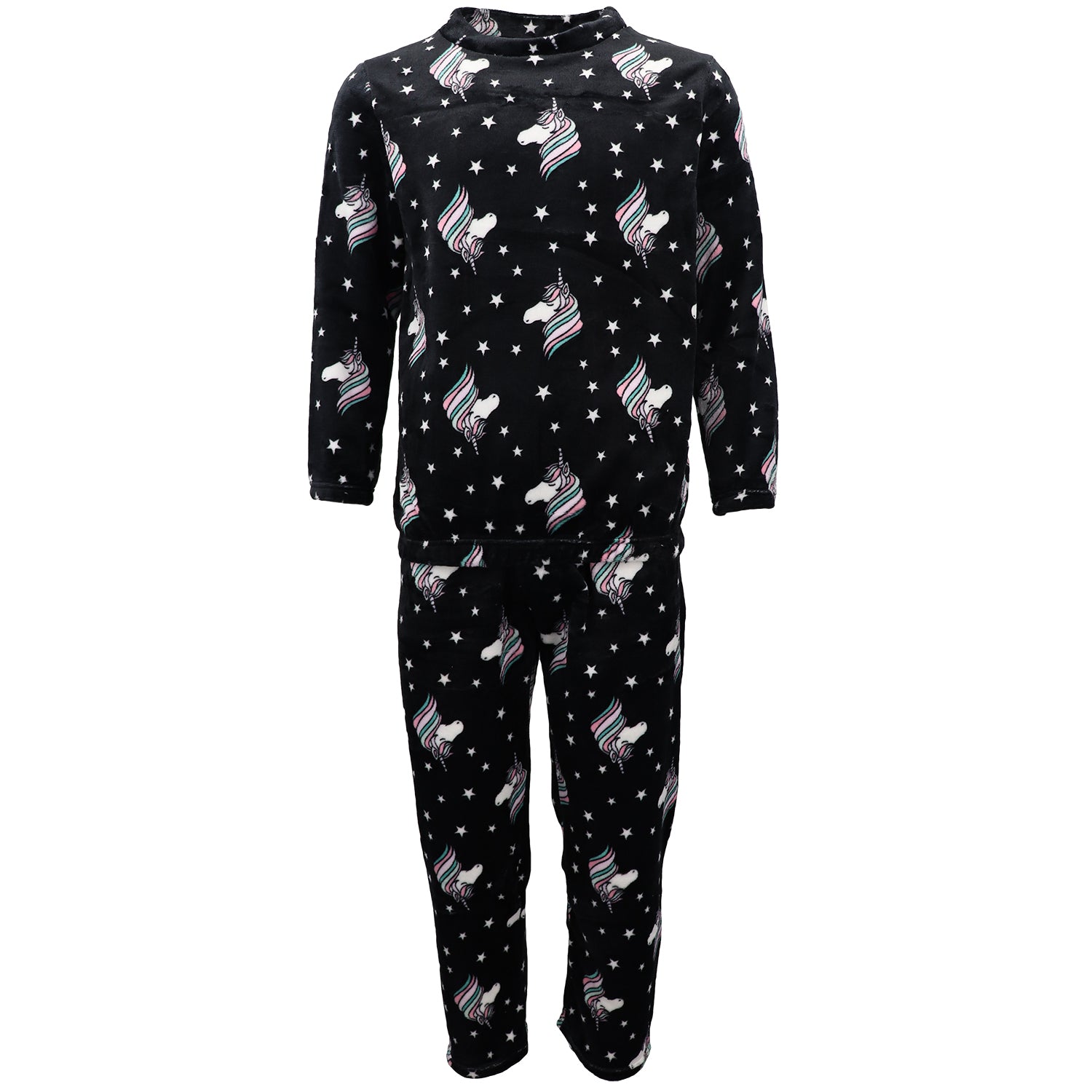 Women's 2PCS Pyjama Set Soft Plush Lounge Sleep Pajama Fleece Winter Sleepwear, Unicorn Stars, S/M