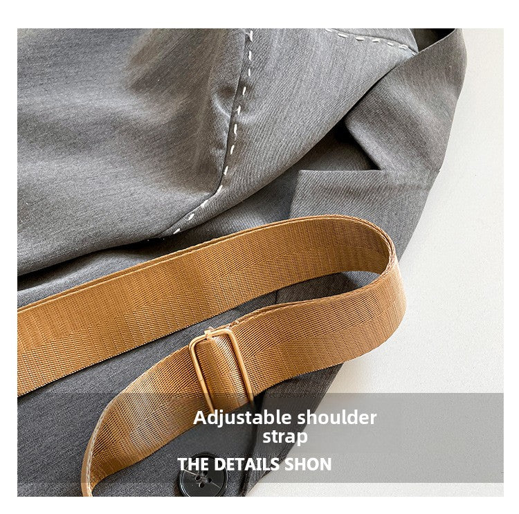 The interior features a dedicated phone pocket to keep your device scratch-free and accessible. The wide fabric strap adds a sporty-chic touch and can be easily adjusted to your preferred length. Whether you are exploring the city or running errands, this bag is the ultimate accessory for those who value both style and convenience.