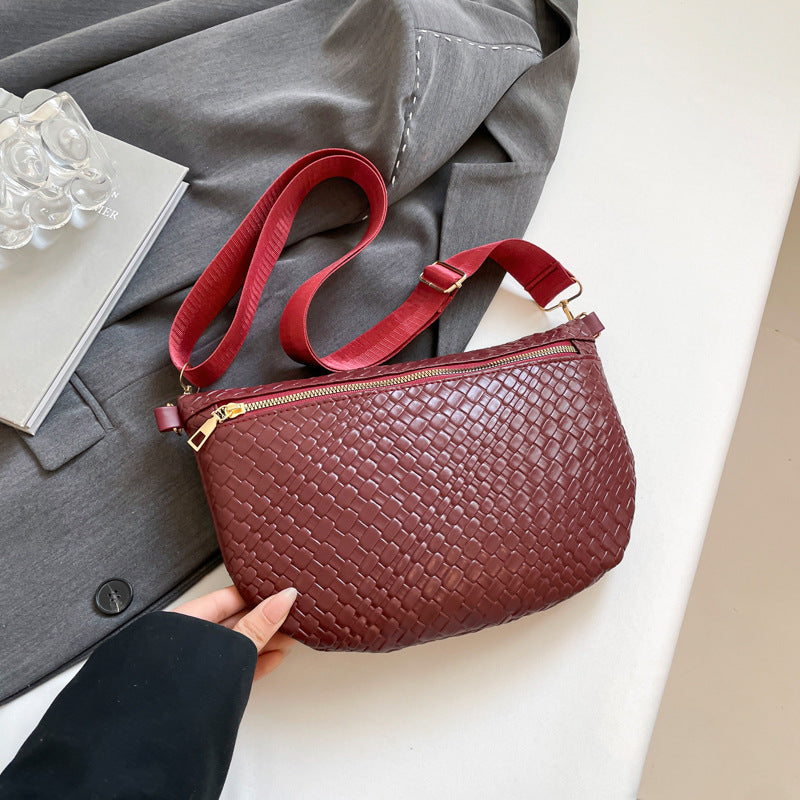 Discover the perfect blend of fashion and utility with this Red Woven Chest Bag. The unique dumpling crescent shape is not only on-trend for the 2025 season but also ergonomically designed to fit comfortably against your body. Made from high-quality soft PU leather, it mimics the supple feel of genuine leather while being eco-friendly and easy to maintain.