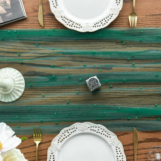 Give your party table an elegant and festive accent with this gauze veil. Embellished with delicate white pearls, it instantly adds a touch of sophistication and texture to any occasion.